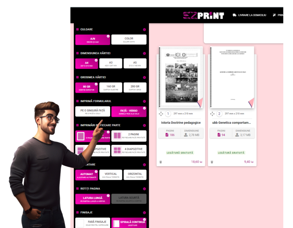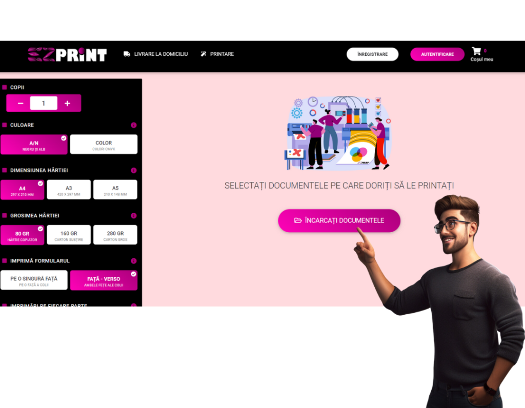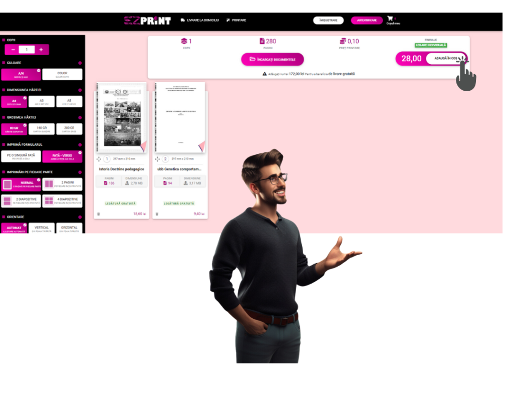 Selectează / încarcă documentele , poți adăuga câte fișiere doreșți, dar tot ce adaugi să aibă aceeași configurare de printare, nu-ți fă griji ulterior mai poți adăuga tot ce ai nevoie